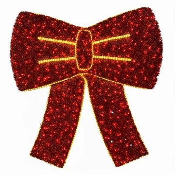 Fiocco Natalizio luminoso 3D in struttura di alluminio rivestita con carpet decorativo di colore rosso, lampadine a LED di colore rosso con flash e tubo a neon bianco caldo. Perfetto da appendere sulle facciate dei palazzi, agli angoli delle vostre vetrine. Altezza fiocco - 2m. Larghezza - 1,5m. La struttura viene montata in combinazione con nastri prolungabili. 230V