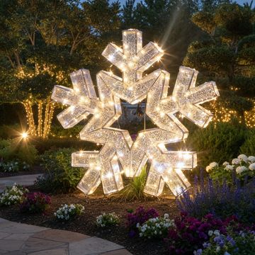 Una decorazione per facciate a LED davvero impressionante con un diametro di 150 cm, fiocco di neve 2D su telaio in alluminio con contorno a motivo. Una meravigliosa combinazione di colori di luce bianca calda e fredda. Voltaggio - 230V.