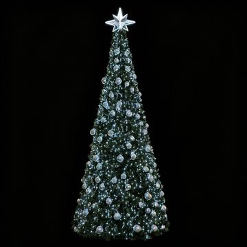 Un albero di Natale tipo CONO alto 6 metri con fitti aghi artificiali altamente resistenti ai raggi UV. L'albero di Natale è dotato di illuminazione a LED. La struttura in acciaio del cono è composta da 9 elementi dotati di di aghi artificiali e illuminazione. Le lampade a LED hanno una funzione FLASH: un effetto flash in ogni quinto diodo.